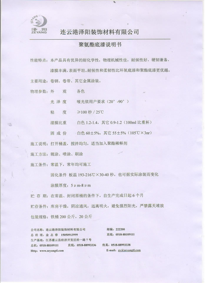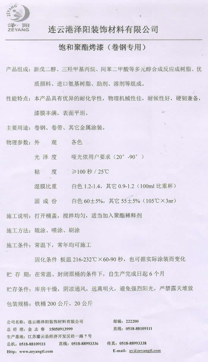销售热线Tel:0518-88993336/88993111 Fax:0518-88993338/88993222 邮编:222200 E-mail:zy@zeyangtl.com