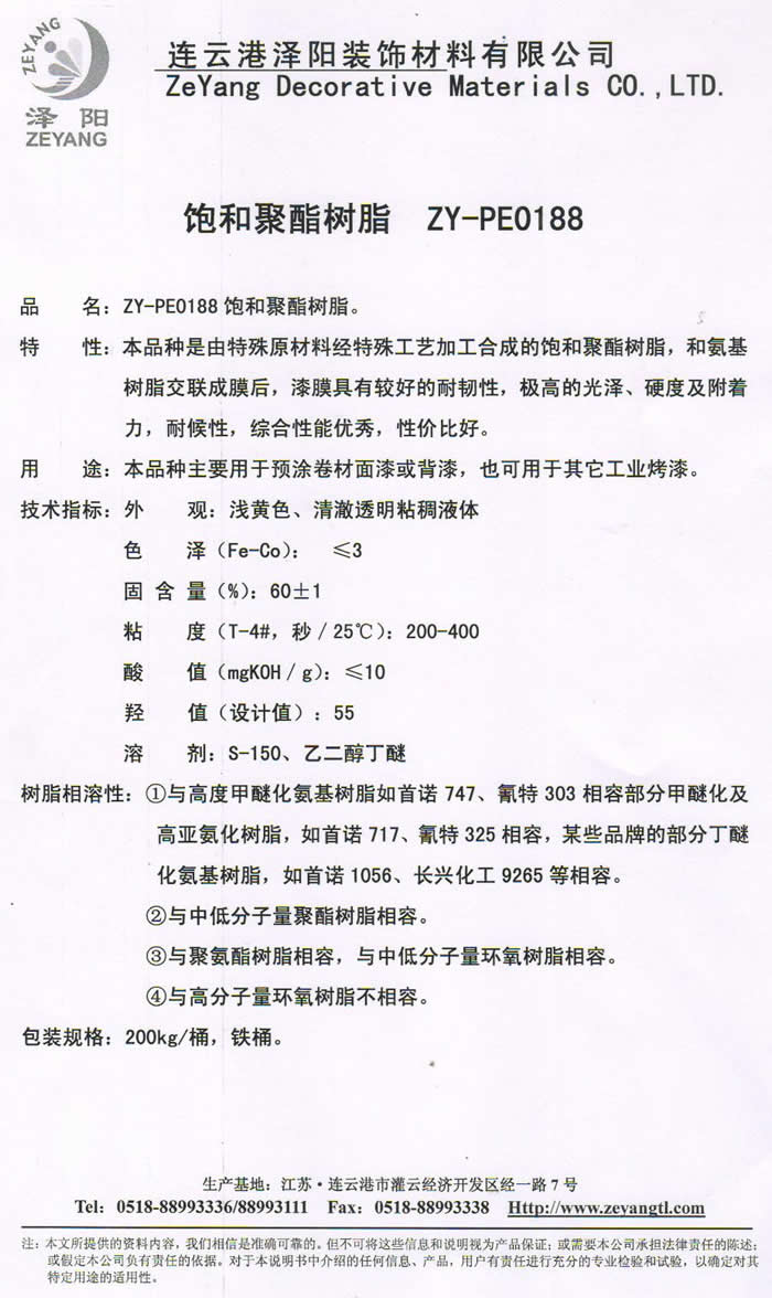 ZY-PE0188 饱和聚酯树脂